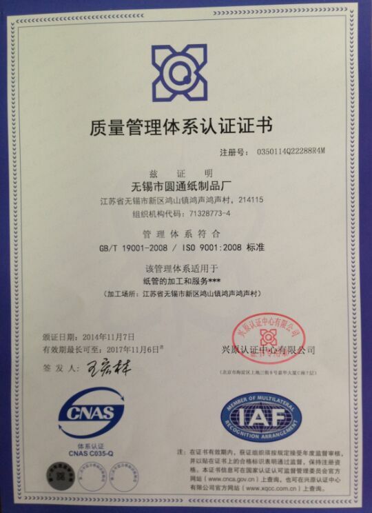 無錫市圓通紙制品廠成立于1996年,公司位于無錫新吳區鴻山鎮,是一家專業生產各種規格工業紙管、無縫紙管、電池紙套、紙吸管的紙管廠家,擁有二十年的紙管制造經驗和完整的質量管理體系,所生產的紙管廣泛用于薄膜、化纖、印刷、造紙、紡織、電子、塑料、食品、膠帶等工業用產品行業,已成為蘇錫滬地區幾十家外企的合格供應商。       無錫市圓通紙制品廠現擁有廠房28000平方米,注冊成本2000萬,員工100多人,目前擁有6條先進的螺旋管生產線和檢測設備,產能達25000噸,(大、中、小)可生產4mm-500mm內徑紙筒,快速分紙機5臺,全自動數控精切機8臺,大小烘房8間,現代化的設備為大規模生產及確保產品的質量提供了保證,同時已獲ISO9001:2015質量管理體系認證和ISO14001:2015環境管理體系認證,所生產的紙管...